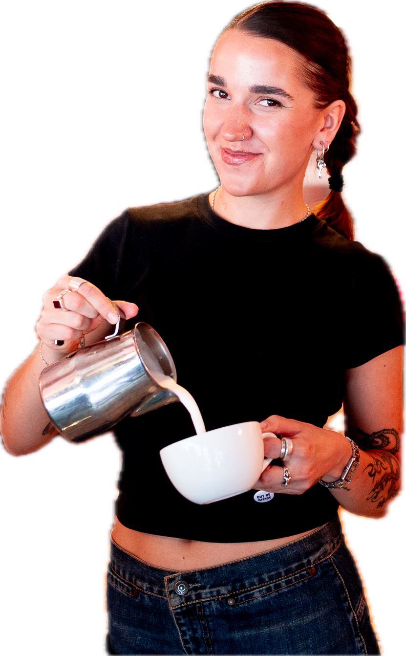 “Making coffee here is like being on stage — the machine hisses, the milk froths, and we get to perform a little magic every day. Sure, we go home smelling like espresso, but honestly… there are worse perfumes.