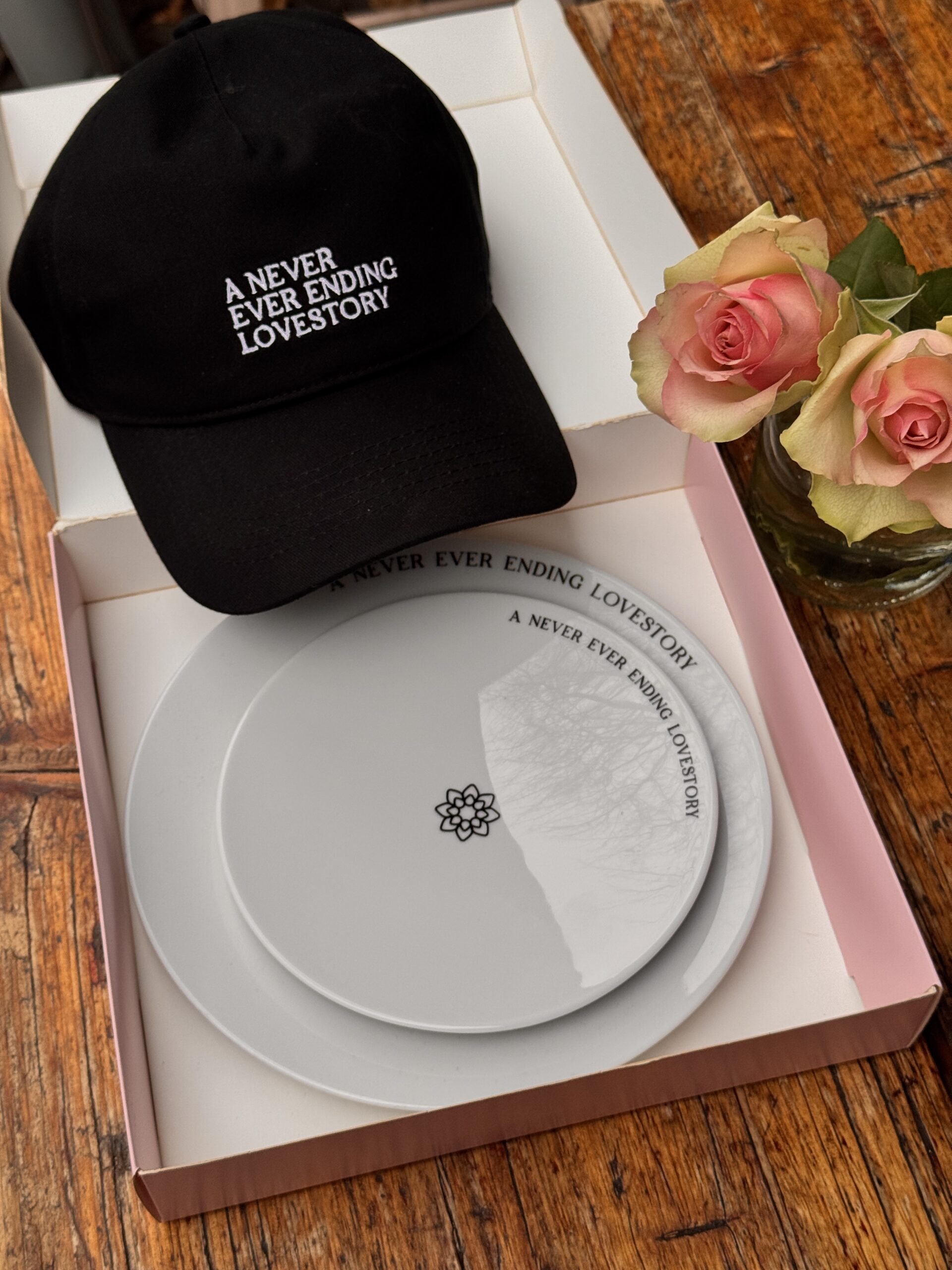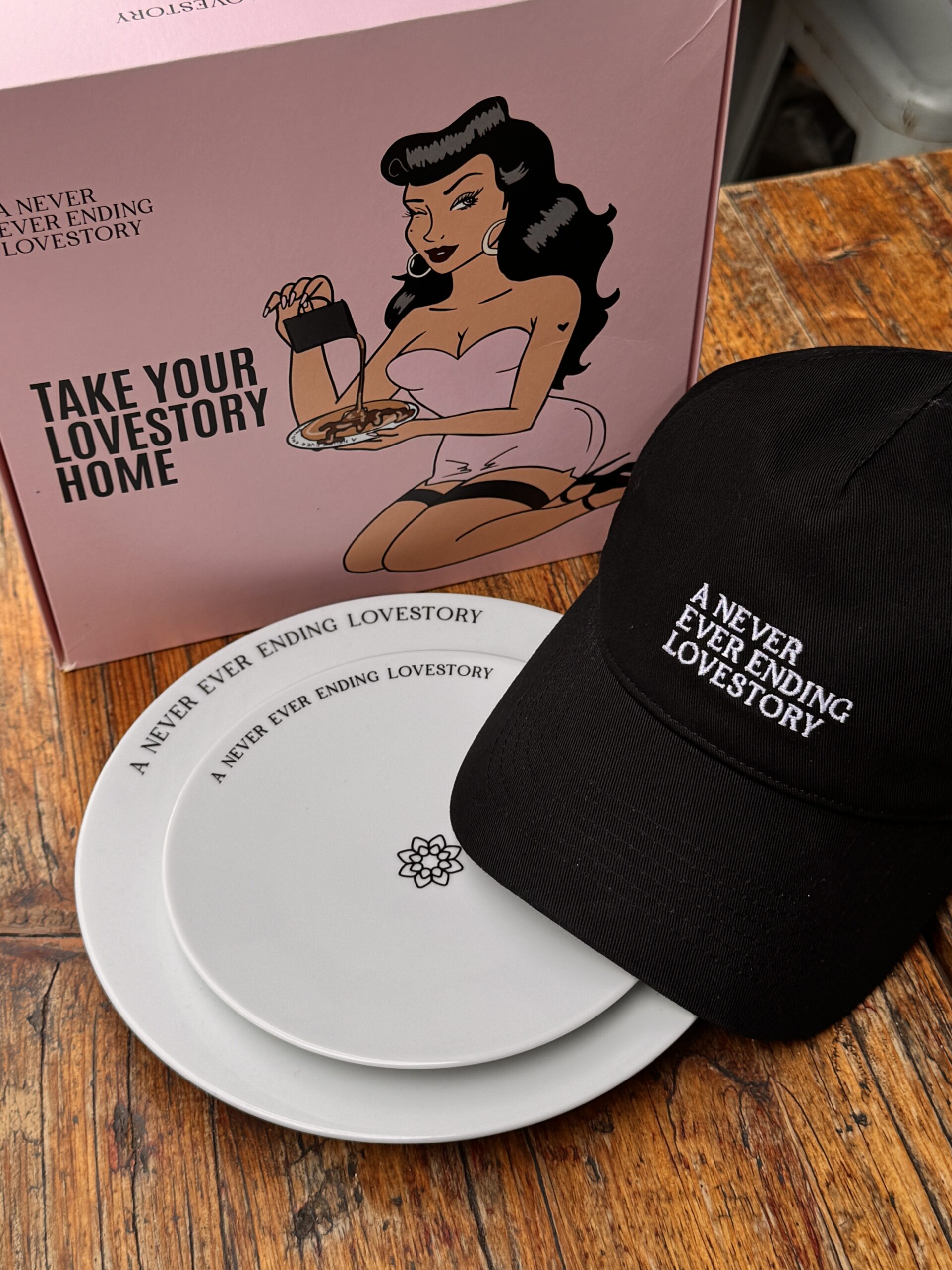 our iconic Lovestory cap and one of our highly requested Lovestory plates.